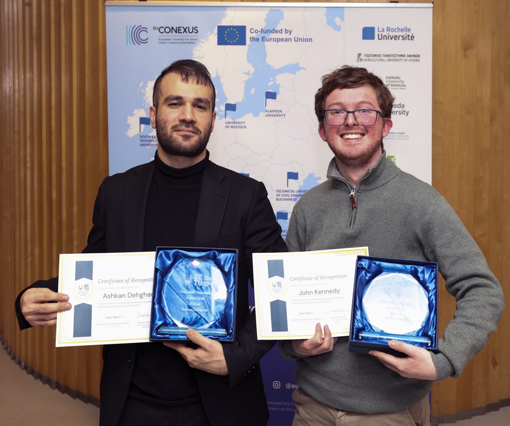 Siobhan Rudden, Institutional Co-ordinator for EU-CONEXUS at SETU, noted, “John and Ashkan have been amazing representatives of SETU on the EU-CONEXUS Student Board, and I am delighted that their hard work is being represented through the President’s Award. Their engagement in regular meetings has given us an invaluable insight into the views of students on things like developing joint education and research opportunities for the EU-CONEXUS partners. I wish them all the best.”