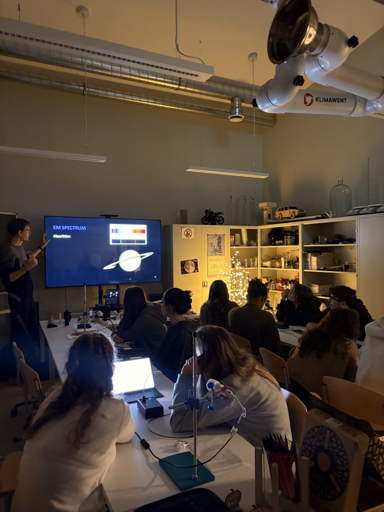 Using a spectrophotometer, the students learned to analyse the spectra of different light sources and understand how this instrument is used to evaluate lighting quality. Through hands-on experiments, they were able to observe real measurement results and clearly see the connection between physical laws and everyday life.