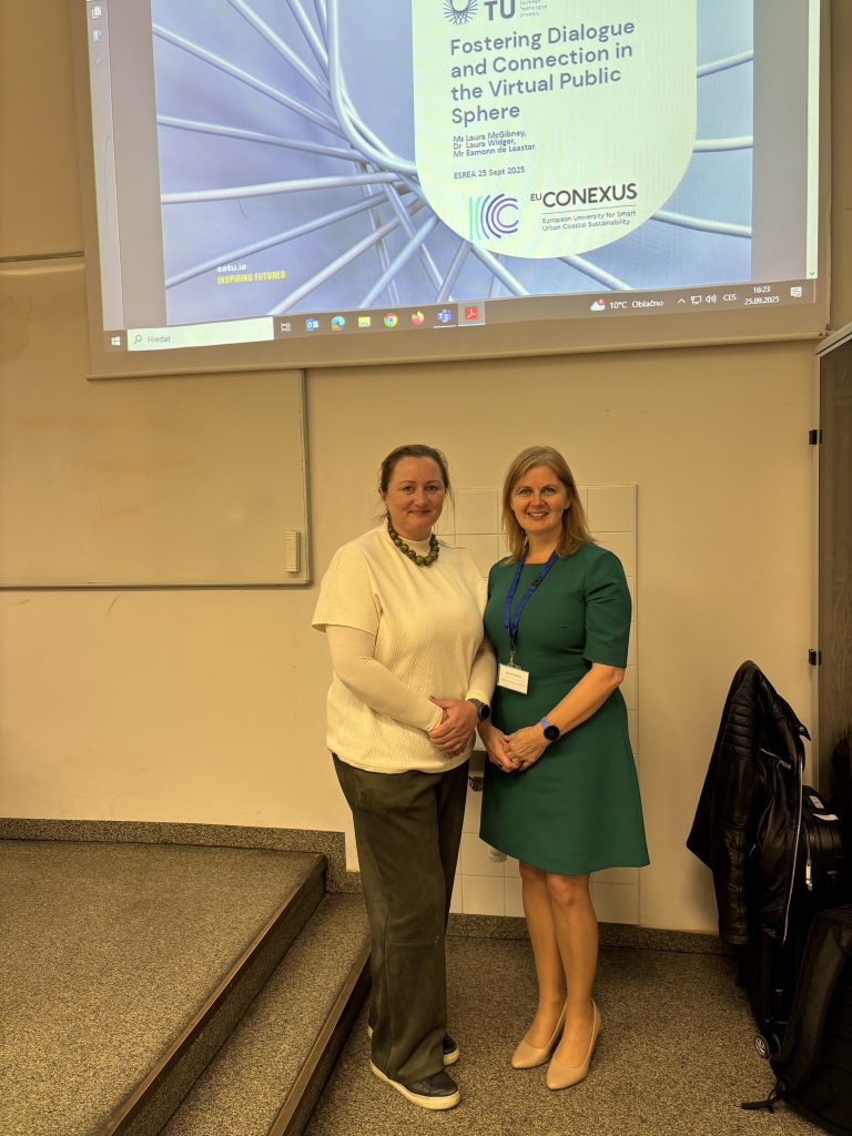Laura McGibney attended the ESREA 2025 conference at Charles University from 12 to 14 February, 2025. The event brought together researchers and practitioners in adult education to explore the theme Dialogue in and through Adult Education and Learning. During the conference, Laura gained key insights into the role of dialogue, reflection, and arts-based practices in fostering confidence, belonging, and inclusion among adult learners. These approaches provided her with new ideas for developing engagement initiatives and designing supportive online learning environments. Her participation broadened SETU’s perspective on how meaningful dialogue can strengthen community, promote social justice, and encourage sustainable, flexible learning. The mobility also highlighted the environmental and economic benefits of flexible learning, such as reduced travel needs and improved access to upskilling opportunities. Supported by EU-CONEXUS, Laura was able to present her work internationally, exchange practices with European peers, and build cross-border collaborations in adult education. Upon returning to SETU, she began implementing creative engagement strategies and sharing insights through institutional and EU-CONEXUS networks, in turn contributing to more inclusive and learner-centred adult education practices.