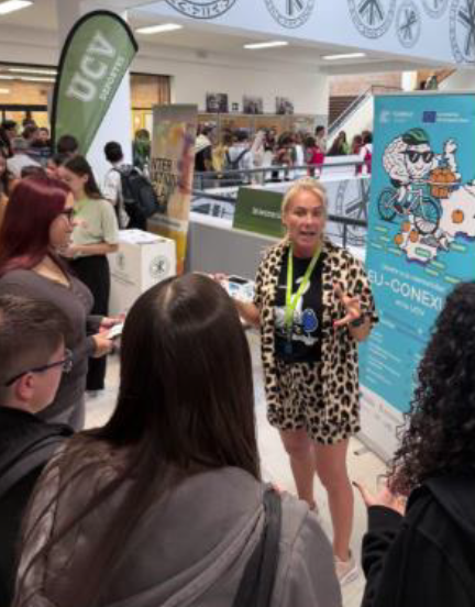 The initiative, led by Margarita Navickaite, EU-CONEXUS External Relations Manager, alongside the dynamic team of EU-CONEXUS Student Ambassadors at UCV, went far beyond a formal presentation. Throughout September and October 2025, the team visited 10 strategic university sites, integrating themselves into the heart of the welcome sessions and directly engaging with more than 2,000 students.